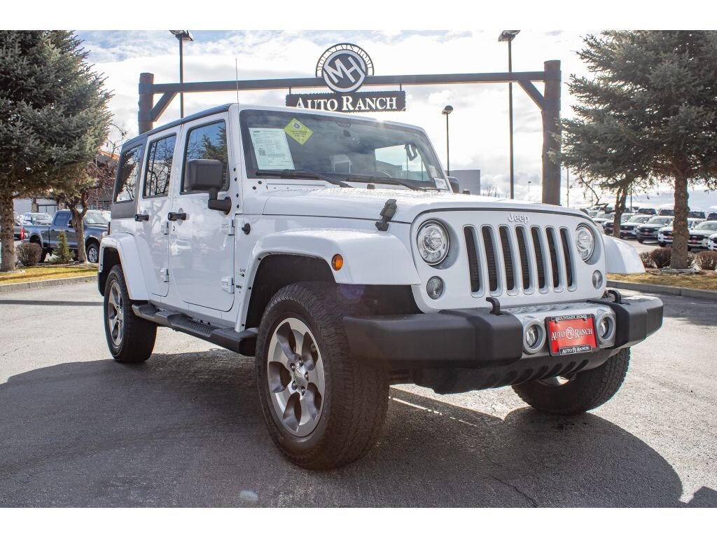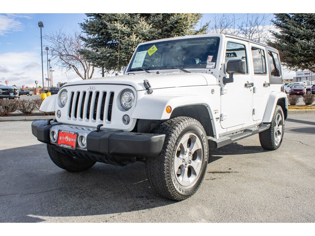 Adventure-ready 2018 Jeep Wrangler JK Sahara, 4WD, V6 3.6L â€" Mountain Home ID's best-priced off-road icon. This rugged Sahara combines classic Jeep capability with modern comfort: the durable 3.6L V6 gasoline engine delivers confident power for highway cruising and rock-solid performance on backcountry trails. Four-wheel drive provides exceptional traction in snow, mud, and rough terrain, while the lifted stance and signature Wrangler styling turn heads wherever you go. Inside, enjoy a driver-focused cabin with comfortable seating, user-friendly controls, and premium features that make long trips more enjoyable. Removable tops and doors give you open-air freedom for summer drives through the scenic Idaho high country. Smart safety features and solid build quality offer peace of mind, whether you're commuting or tackling weekend adventures. This 2018 Wrangler Sahara is located in Mountain Home, ID and priced to move â€" the best price in the area for a Jeep Wrangler JK with this combination of V6 power and 4WD capability. Clean service history, well-maintained, and ready for immediate ownership. If you're searching for a reliable, fun-to-drive Jeep with proven off-road credentials and a competitive price, this Sahara delivers unmatched value. Schedule a test drive in Mountain Home, ID today and experience the 2018 Jeep Wrangler JK Sahara's blend of comfort, capability, and iconic Jeep style before it's gone.