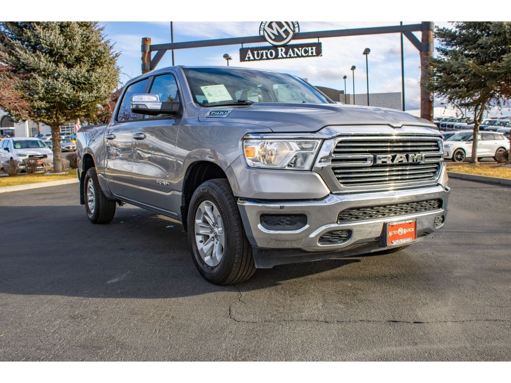 Find exceptional capability and comfort with this 2024 Ram 1500 Laramie, now available in Mountain Home, ID. With only 31,918 miles and a powerful 5.7L V8 gasoline engine paired to 4WD, this pickup delivers confident towing performance and composed handling on pavement or rough terrain. The Laramie trim blends premium appointments with rugged utility, making it ideal for weekend adventures or daily hauling. This Ram 1500 includes sought-after features such as a heated steering wheel for cold-weather comfort, seamless Apple CarPlay integration for smartphone connectivity, and hands-free Bluetooth for safer phone use on the road. The vehicle comes with a CARFAX Clean Report and is a CARFAX 1-Owner truck, giving you transparent ownership history and added peace of mind. Meticulously maintained and loaded with modern convenience and safety technologies, this Ram 1500 stands out in its class. Competitive pricing makes it the best price in the area, delivering outstanding value without sacrificing quality. Whether you need a capable workhorse or a refined driver's truck, this Laramie offers an excellent balance of power, comfort, and tech. Schedule a test drive in Mountain Home, ID, to experience the robust V8 performance and refined cabin firsthand. Contact us today to lock in the best price and drive home a dependable, well-documented 2024 Ram 1500 Laramie.